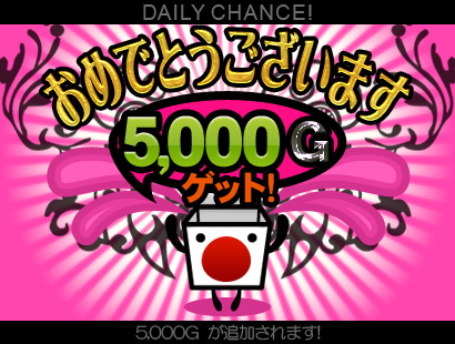 5000Gあたった!wwwめっちゃうれしいww 何%ぐらいなんだろう、今はGだとこれが最高額だったかなww 変更されてからPとかの当選わからないから よくわからんけど5000Gはでかいw 何か交換するのもいいけどためておこうかな。